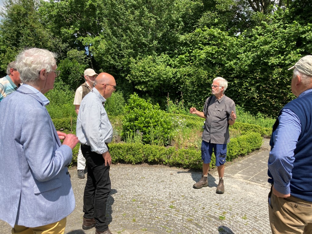 Na elkaar op de parkeerplaats Kale Jonkerpad op deze schitterende dag te hebben begroet was de wandeling naar de Heemtuin al een genot voor het oog. In de heemtuin zelf kon worden gekozen uit een kop koffie of thee en de activiteitencommissie had gezorgd voor een koek.